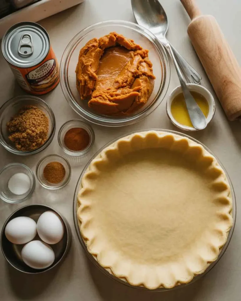 In a large bowl, whisk together pumpkin puree, sugar, eggs, milk, and spices until smooth and creamy. The texture should be silky this ensures your pumpkin pie bakes evenly.
