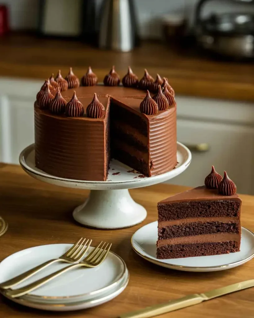 The result is a classic chocolate fudge cake texture rich without heaviness and tender without crumbling.