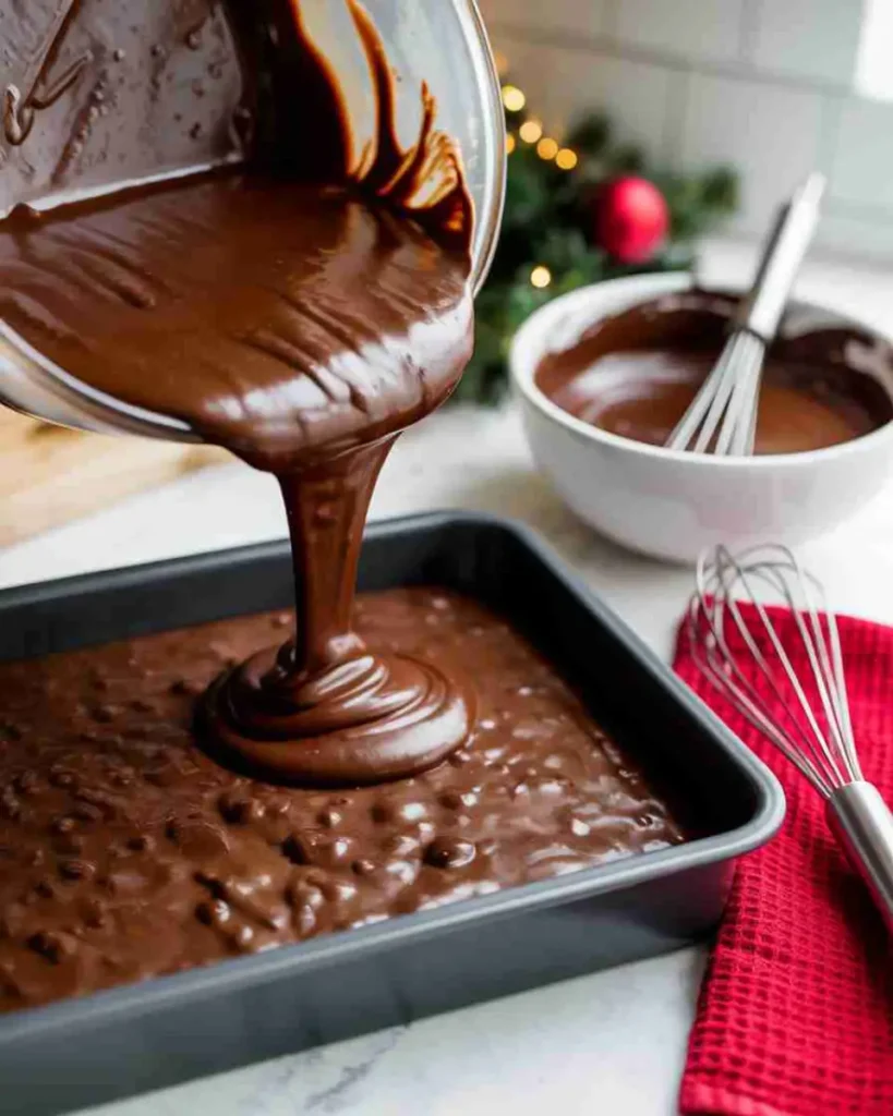 Spread batter into a greased baking pan and bake until the center is set but still soft. This ensures the brownies stay gooey just the way holiday brownies should be.