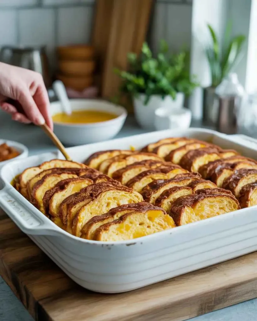 A holiday classic that tastes like cinnamon-sugar heaven. Soak bread overnight, bake in the morning, and drizzle with maple syrup one of the best Christmas brunch recipes for busy mornings.