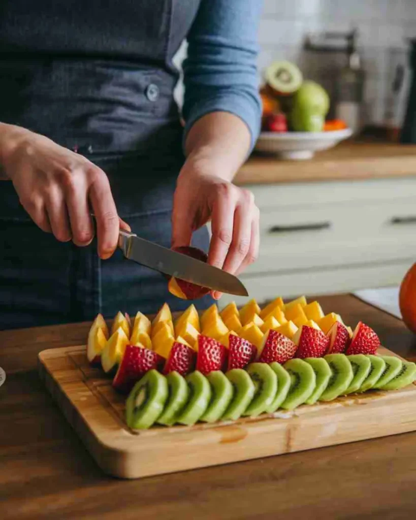 Excess water can make fruits soggy, especially berries. - Cut fruit evenly