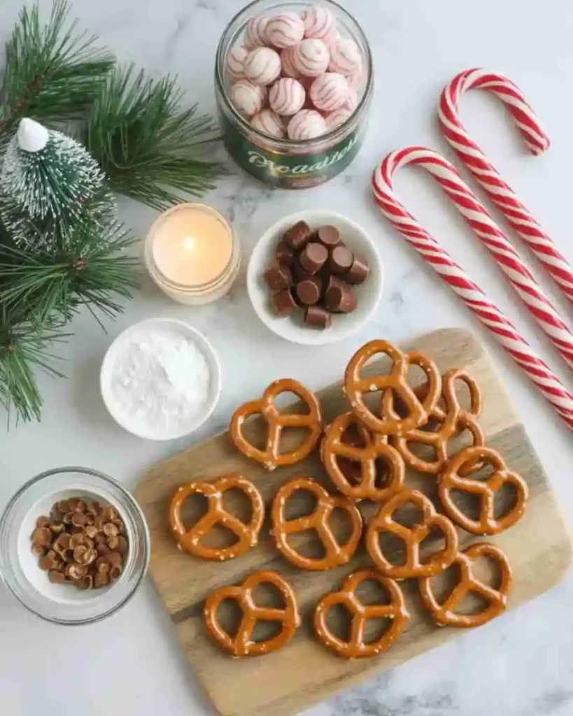 - A 3-ingredient festive candy made with pretzels, Rolos, and your favorite toppings perfect for Christmas parties, gifts, or dessert boards.