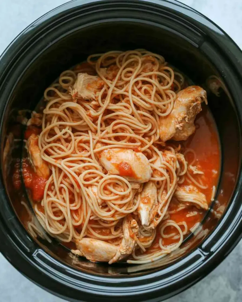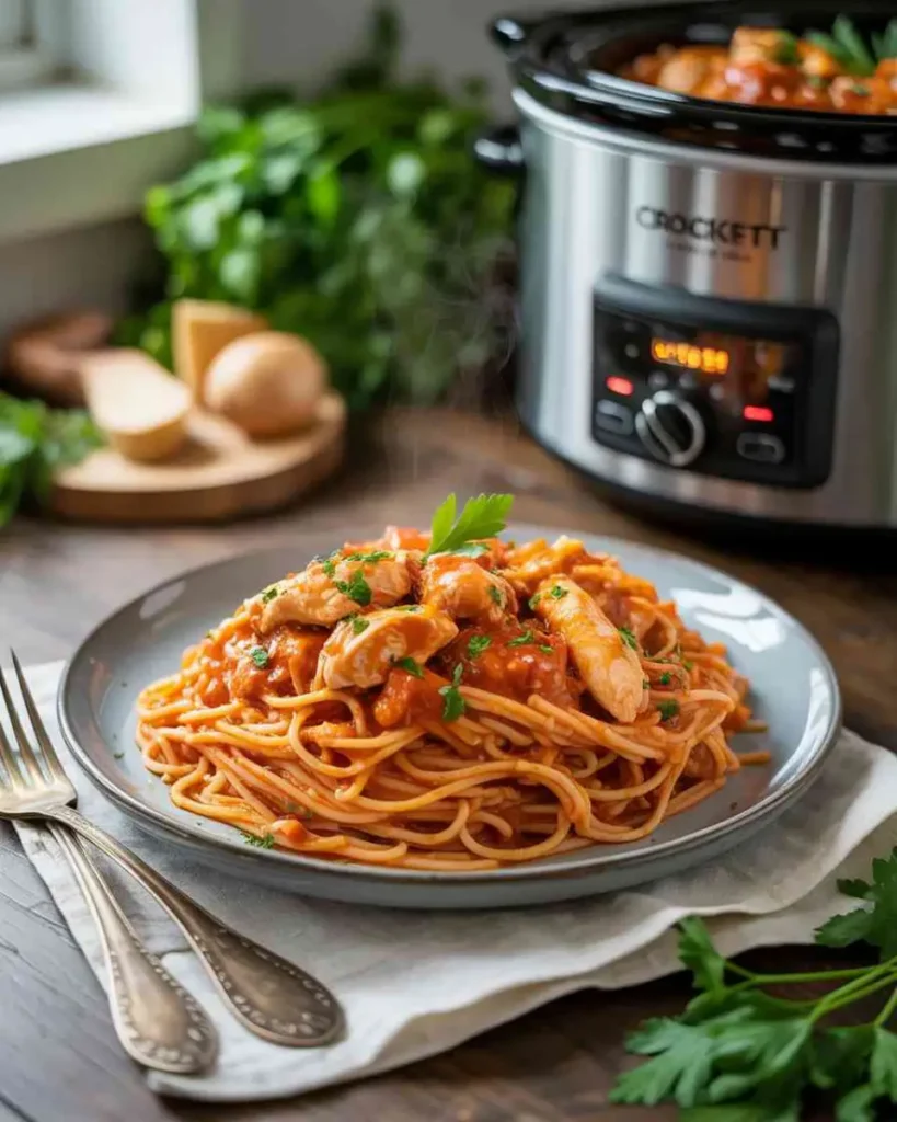 Slow cooker pasta dishes are popular for good reason. The chicken stays tender, the sauce develops deep flavor, and there’s no standing over the stove juggling multiple pots.