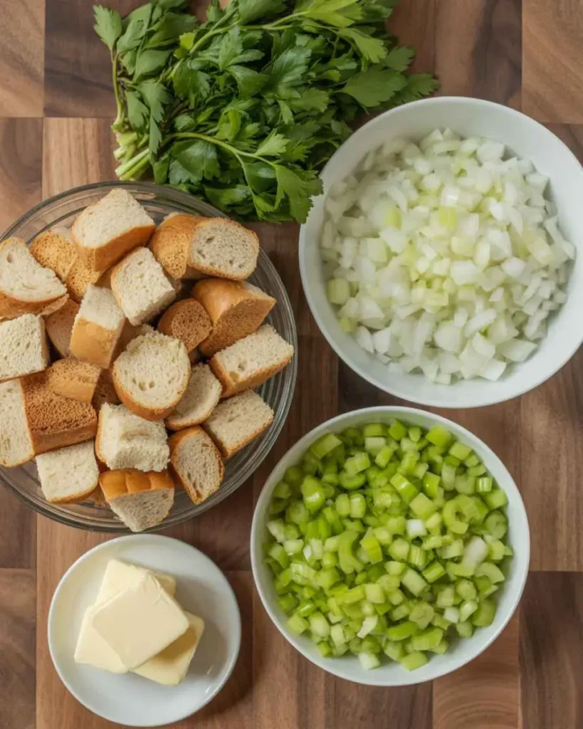 Every Thanksgiving table has its star, and while turkey gets the spotlight, it’s often the dressing that quietly steals the show. So, what are the ingredients in Thanksgiving stuffing that make it unforgettable? For this classic dressing recipe Thanksgiving cooks trust year after year, we use three bread types: cornbread, Italian bread, and French bread. When dried and cubed, they create a hearty, satisfying base with a mix of textures soft in the center, crispy on top.