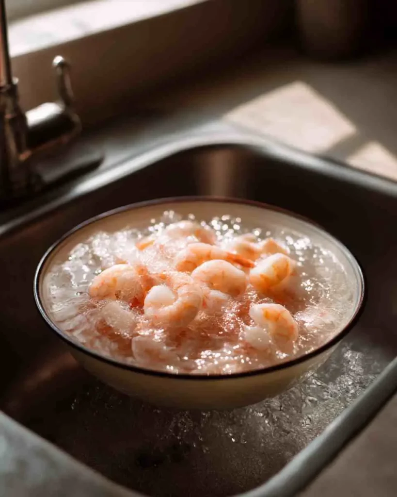 • Thaw shrimp in cold water for 10โ€“15 minutes.