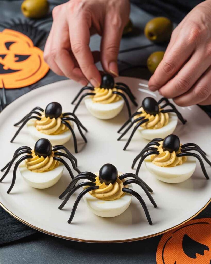 You don’t need to be a master chef to bring something memorable to a Halloween gathering. Some of the best Halloween potluck food ideas are actually the easiest. One of my go-tos? Deviled eggs turned into “spider eggs” using sliced olives. Or make “witch hat cookies” by sandwiching chocolate kisses onto fudge-striped cookies with orange frosting zero baking required! Even a simple crockpot chili can be made spooky with a swirl of sour cream shaped like a web. These recipes don’t require fancy ingredients or techniques, just a little creativity and a Halloween twist.