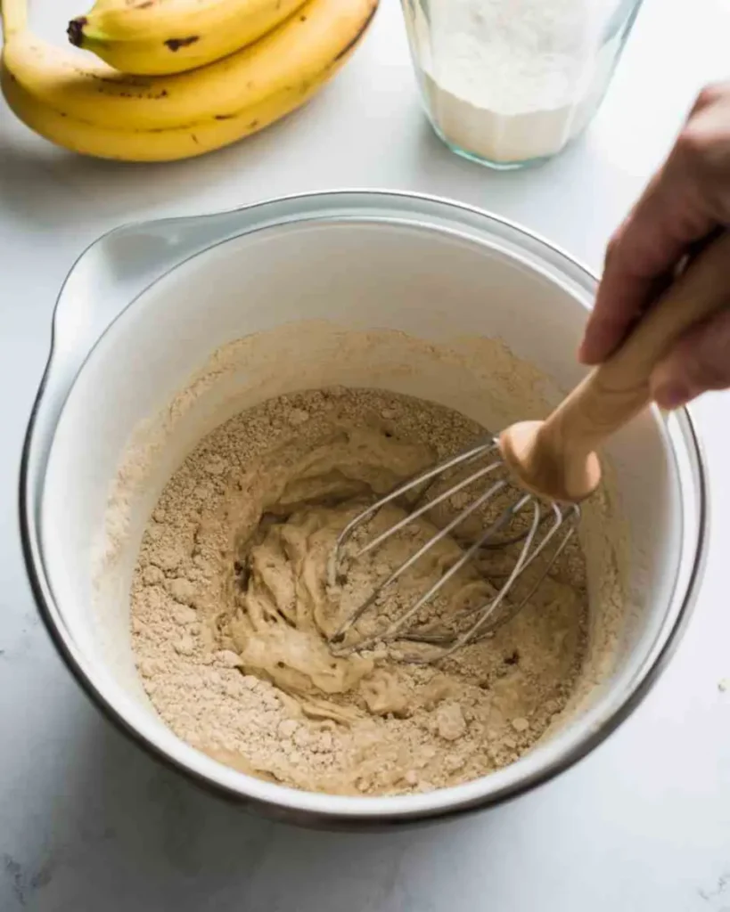 - Combine gently. Fold the dry ingredients into the wet mixture until just combined do not overmix.