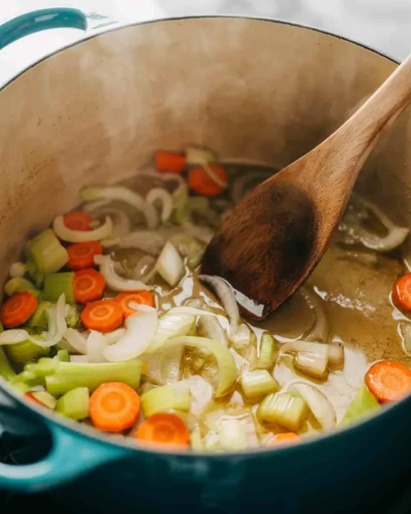 - Add onions, carrots, and celery; sauté for 5 minutes.