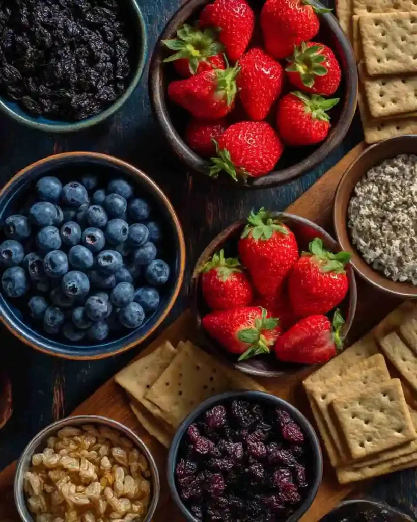 Combine fruit skewers, crackers, and light sweet treats for variety.