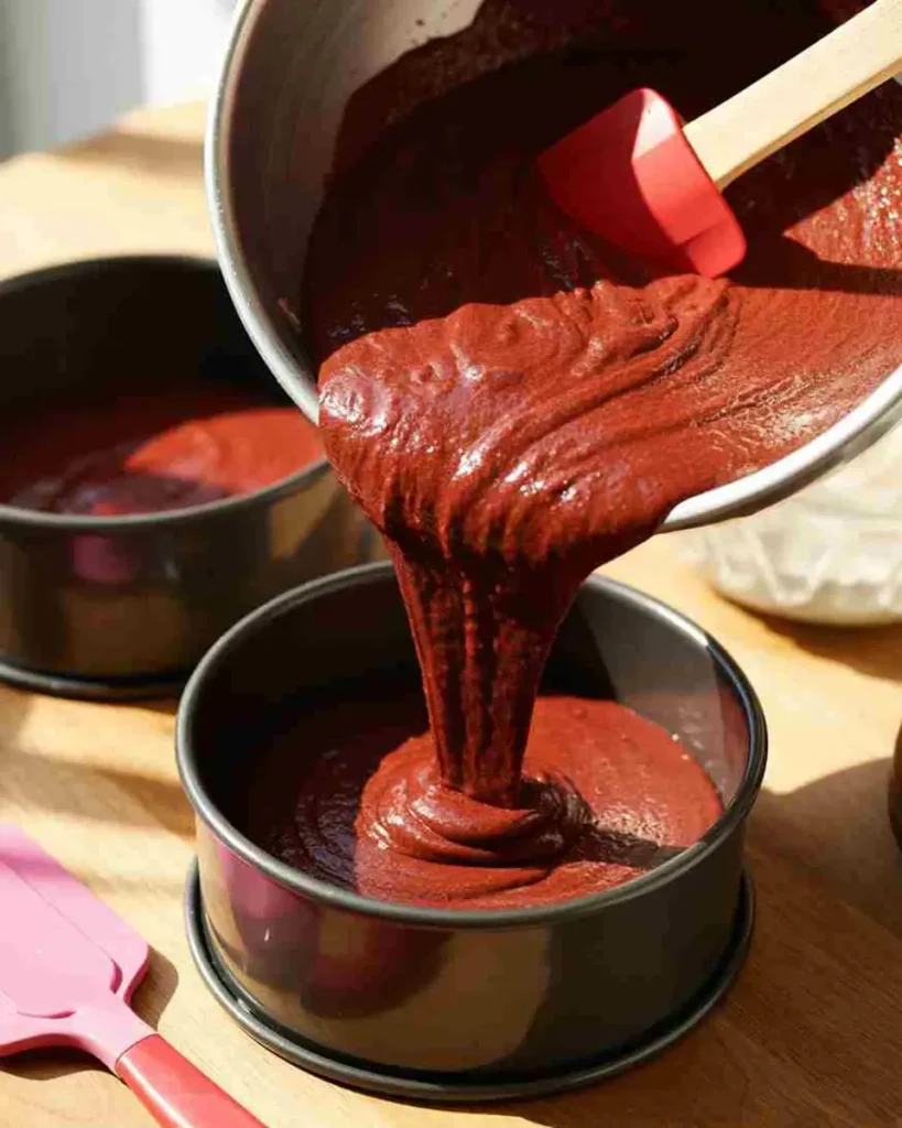 - Divide batter evenly between pans and bake 25–30 minutes. Cool completely.